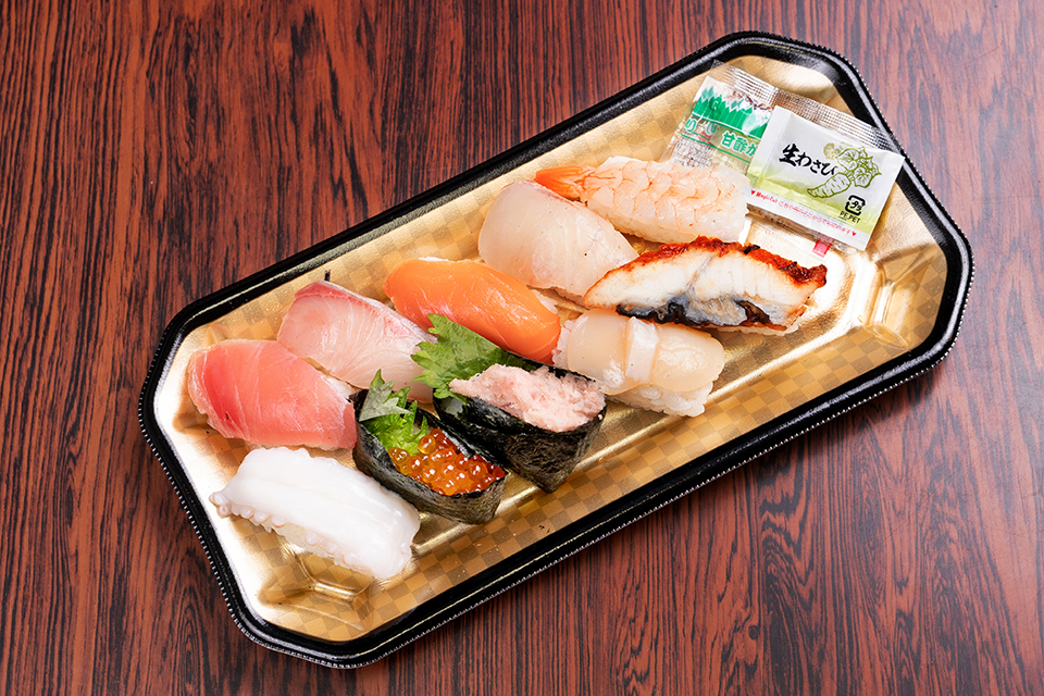 選りすぐりの海鮮で握った当店で大人気の「お魚屋のお寿司」は、その季節の旬で新鮮なネタを使用しております。